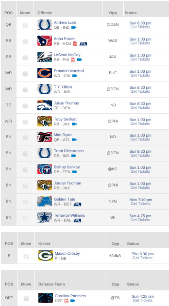 It's going to be difficult to keep track of all four teams... I guess it's good to have Colts players; it makes it easier to watch football games (not having to cheer against the Colts).