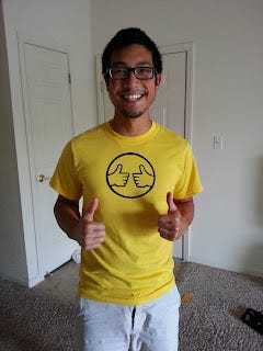 I'm sure you are asking yourself, "How can I get my hands on one of those awesome shirts?". (The process used to make it here.) I have made several shirts already and they are ready to be worn. While I prefer the yellow shirt with black lettering, I can make shirts of other colors and use different color ink.