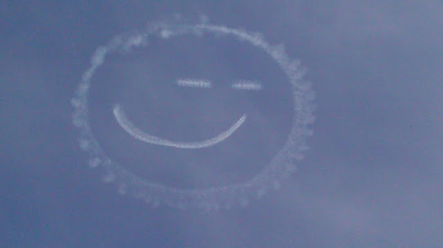 At times it's great going people watching and seeing odd behavior but many times you don't have the opportunity to do it. So, you can just go outside, day and night, and just stare at the sky so you don't toss and turn and keep stressing your mind; it can really free your mind. During the day, you can stare at the clouds and see objects using your imagination. Some clouds, like the one above, tell you "Smile like you mean it". If there at no clouds, staring at the beautiful blue sky is just as good; it may be easier to free your mind.