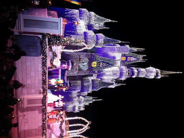 Disney definitely let everyone know that the holiday season is upon us with the music and of course the holiday inspired merchandise. But furthermore Cinderella's castle was lit for the holidays.