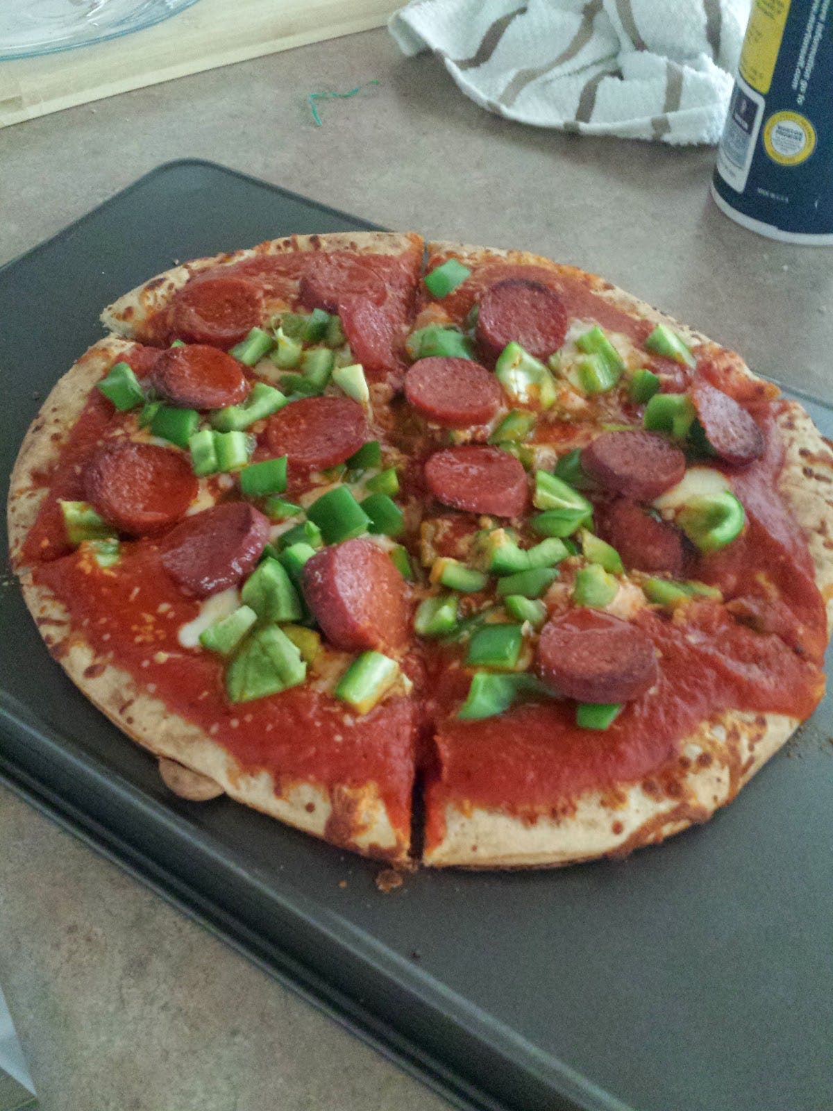 Today, I baked my first homemade pizza. Nothing special. Pre-made dough, pepperoni, tiny amounts of mozzarella cheese, and a bell pepper. But I was flabbergasted by the short baking period (8-10 mins). No longer will I buy frozen pizzas that take over a half hour; I could go to the grocery store and buy ingredients and cook a pizza in that amount of time!