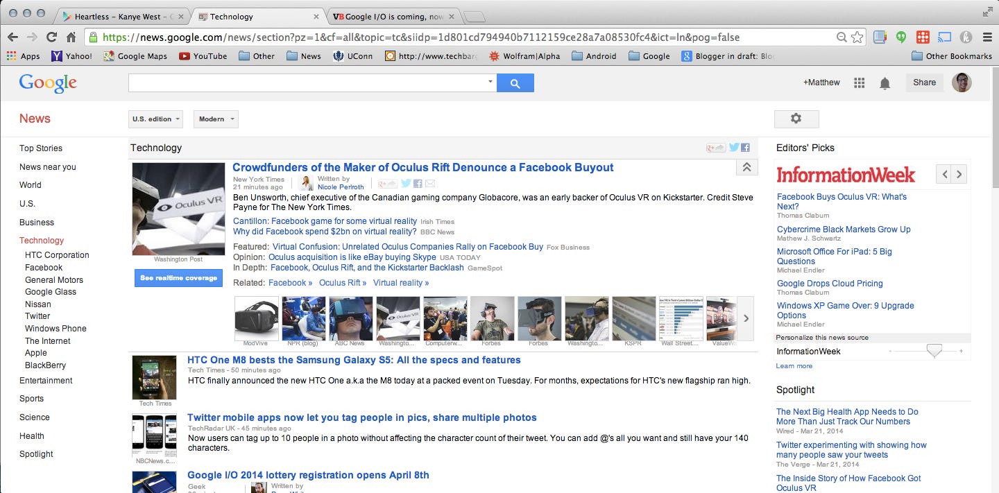 P.S. You may have miss the last article in the first screenshot of this post. Signups for Google I/O is coming! But this year, it's an entirely random process. Previously years, it was first-come first-serve and was over in minutes. How do I feel about it? The same I feel about how they made UConn Basketball tickets a lottery. It's not really fair since some people care more than others. Maybe the lottery will distract the fact that a Google+ account is required for registration.