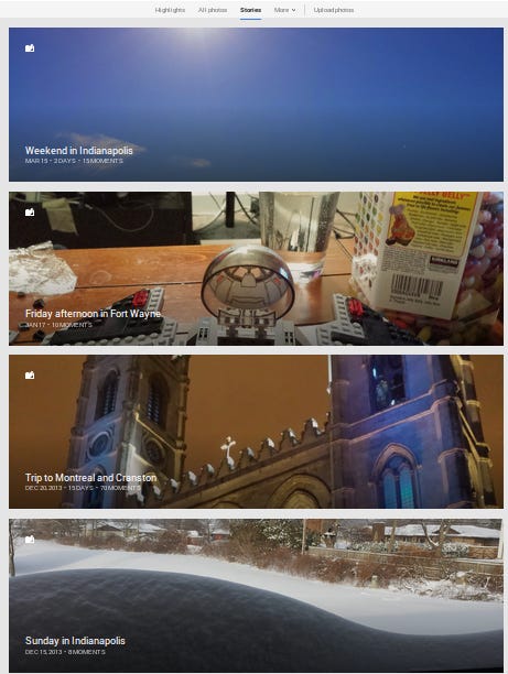 Google+ does wonders again with Google+ Stories! While I really enjoy that Apple's iPhoto categorizes photos automatically into events, Google took this one step further. Google selects certain photos and automatically creates albums based on events in your life.