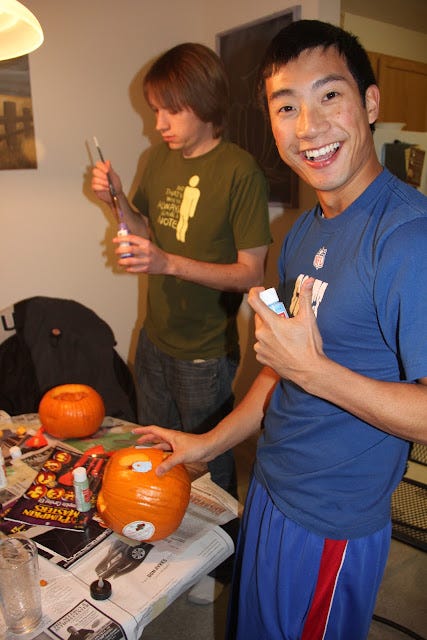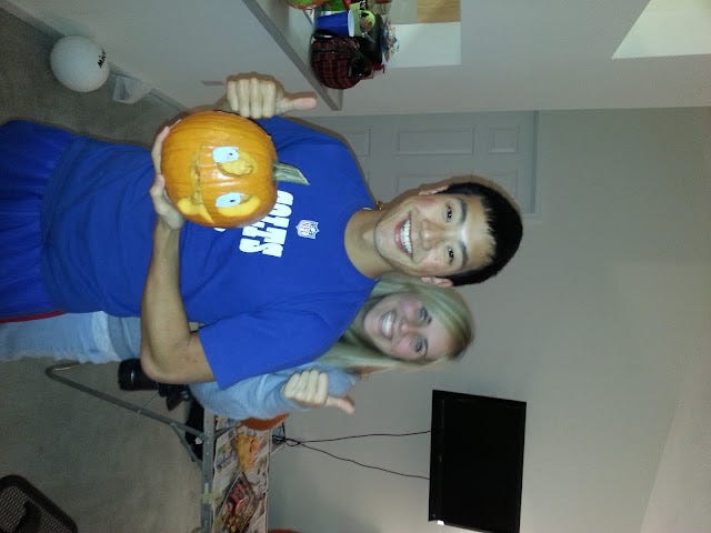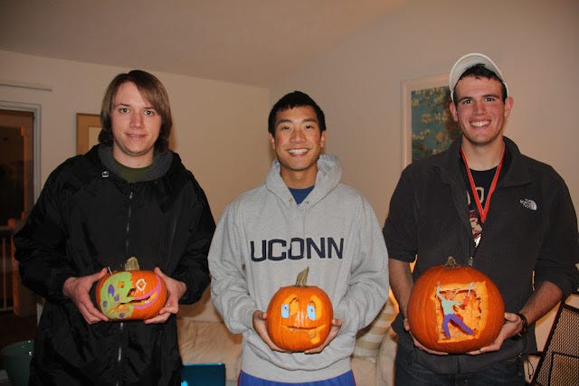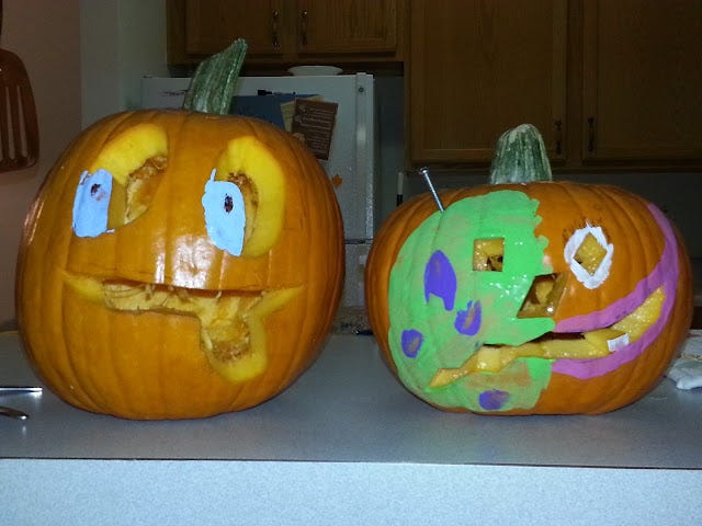 Continuing with tradition (that started last year) and celebrating Halloween, my friends and I carved some pumpkins! Oh yes! The pumpkin may be the most prominent symbol of Halloween, next to the wicked witch and black cats. So which did I carve? Let's eliminate the least probable ones: