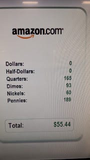I was tired of all the change in my life! So, I took it all from my room and Electra and took it to the Coinstar machine in Meijer's (Big Walmart-like store for those who don't know). The best part is that you can get gift cards to multiple major stores for no fee at all; since I shop at Amazon all the time (Amazon Prime!!!), it was logically to get my gift card there.