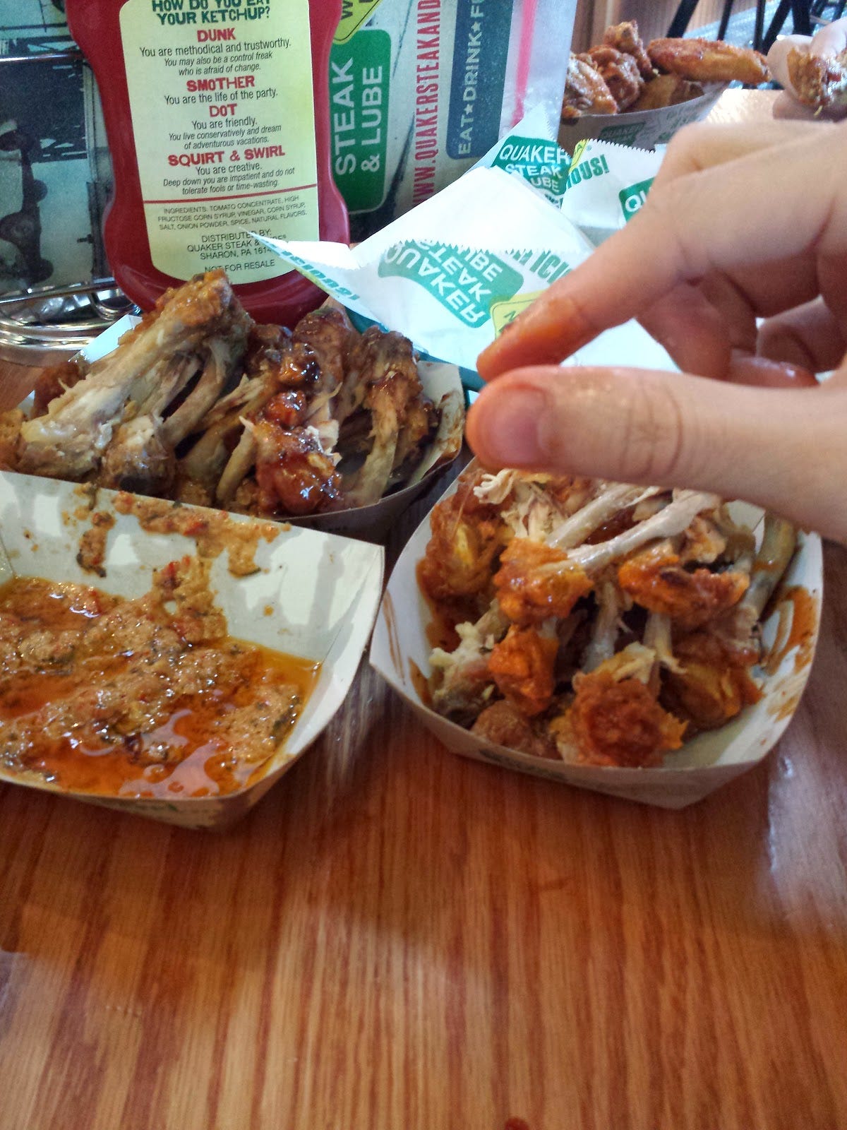 Today, I was fortunate to go out to Quaker Steak and Lube for their all-you-can-eat wings Tuesdays. And I had not been to an all-you-can-eat establishment in a long time so I didn't know how much I could actually eat; I set my goal at a reasonable twenty wings since I have volleyball to play tonight. So it was on: