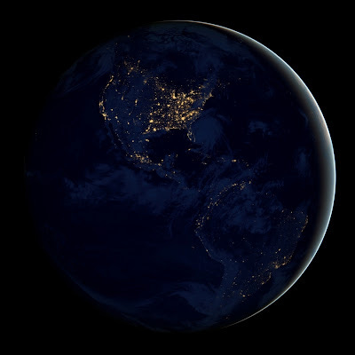 It's amazing how many humans live in clusters (cough **East coast of America** cough) and how much "empty" areas there are (Especially in South America and Africa). I think I was most amazed on how the Niles River is lit up so brightly. Raytheon's Visible Infrared Imager Radiometer Suite (VIIRS) (with its day-night band) with the Suomi National Polar-orbiting Partnership Satellite made these images possible after many passes over the Earth. Of course VIIRS has many useful purposes too, including improving meteorologists with their weather forecast (like they need it...), measuring climate change and other Earth's characteristics, and much more.
