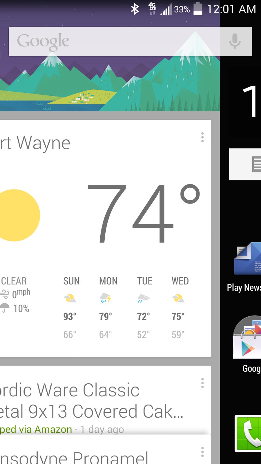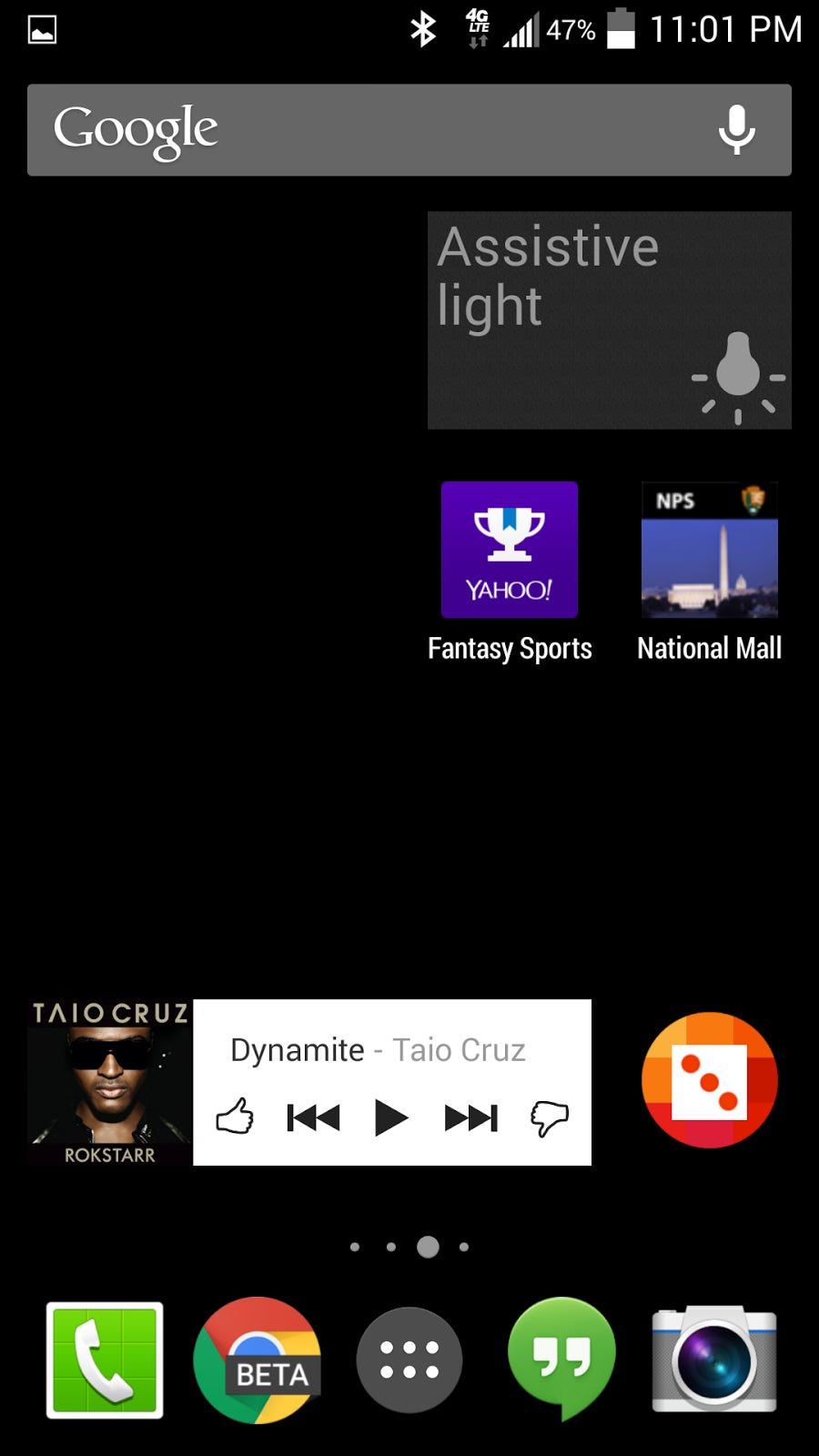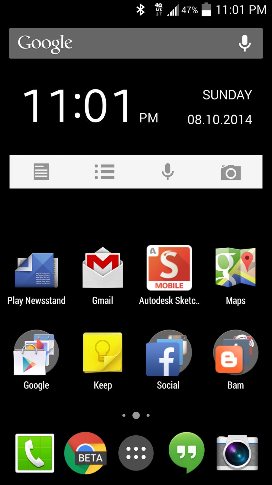 As you can see, the home screen looks like stock Android; it's nice and simple. But where the Google Now Launcher differs is swiping to the left brings up Google Now instead of another home screen panel. I've only had it for about a week and I'm in love with how easy it is to access Google Now.