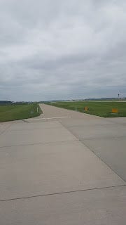 I thought the end of winter meant the end to travel delays. I couldn't have been more wrong. The Philly airport has closed due to the rain storms. Now I'm waiting on the tarmat (is that what it's called? Update: it's tarmac (Thanks Marv!)) in Fort Wayne International for at least a half hour. Here's the view from my seat.