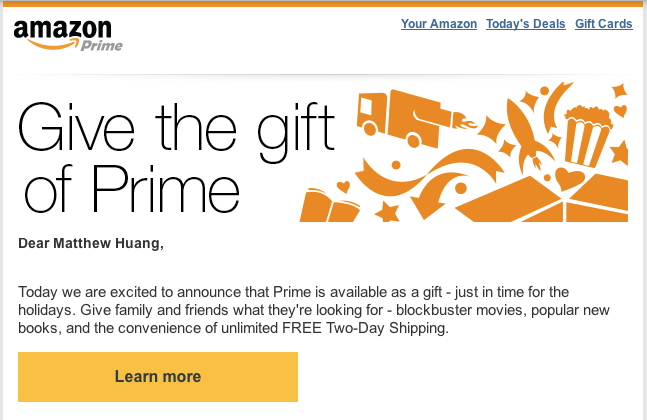 Looking for the most excellent gift for someone? Give a special someone one of my favorite services of all: Amazon Prime