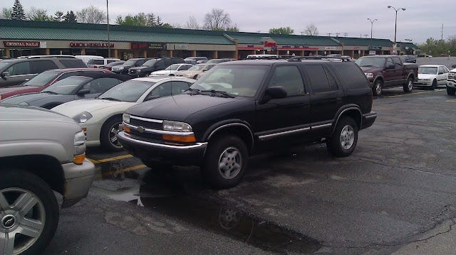 And lastly, people cannot park correct. They park outside the lines more than a kindergarten colors outside the lines in a coloring book. And if there are no close parking spaces to their destination (Anything past 3 rows of parking), they make up their own parking spaces as soon below: