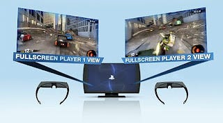 Using the 3D technology, Sony has created a method of creating two different screen based on the prospective. Of course each individual screen will only be in 2D though. This is probably the best use of 3D I have seen for video games so far. This could end the split screen for video games forever for 2 players. But the screen size for 4 player split screen games can double with this technology.