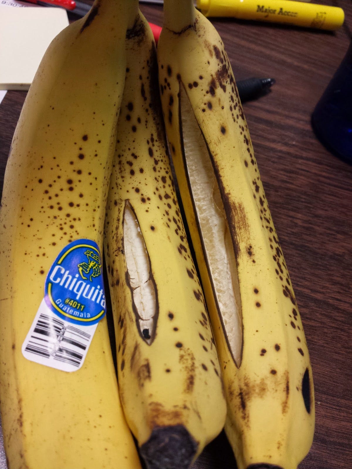 I have no idea how this happened. It may or may not be due to the extreme cold temperatures in my cube. I had to keep to my fruit eating habits so I did indeed consume the bananas.