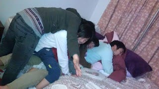 We spent some time watching my brother play Zelda, but it isn't as boring as you would think. The little ones had much interest in the game and commented on what should be done. Then, taking them to see my sister's dog was quite the experience too. It was odd driving so many little ones in a mini-van. Did I vision my future? Probably not. But they loved Dimple, the dog. The tricks she could do and such. Then, watching two boys chase around playing tag and pretending to have one leg by putting two feet in on slipper was pretty entertaining. The food was really good too.