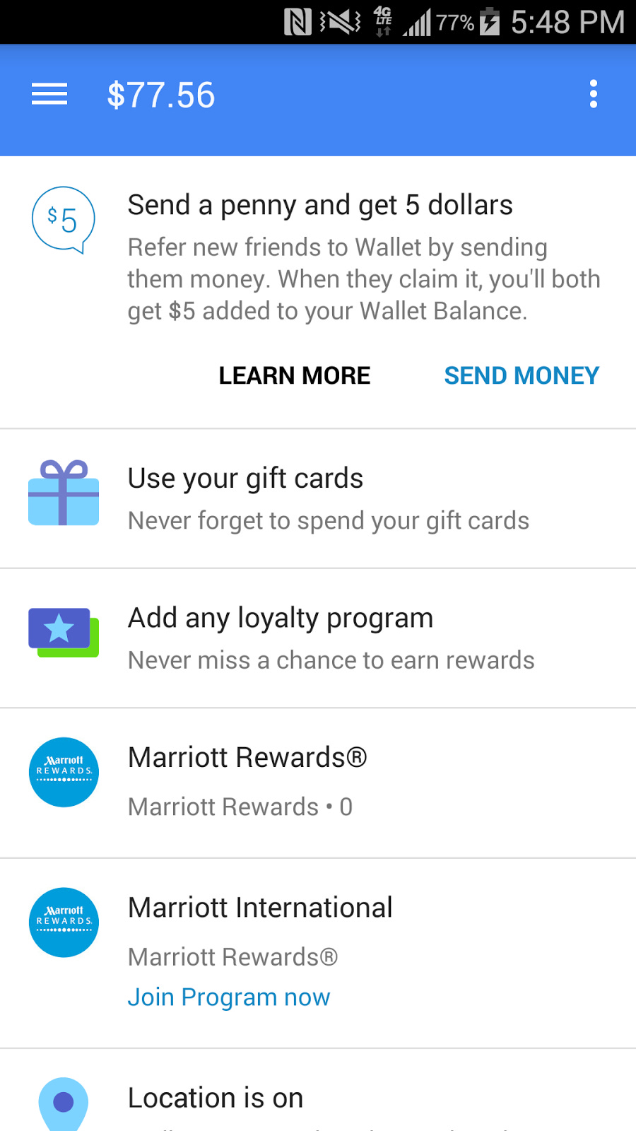 The war to be the middle man in all these transactions is on. Google is even offering $5 for each referral on their service. As an avid Google Wallet user, I hope the service continues to gain in popularity and continues to improve and grow. (Hopefully the Marriott Rewards updates properly in the near future)