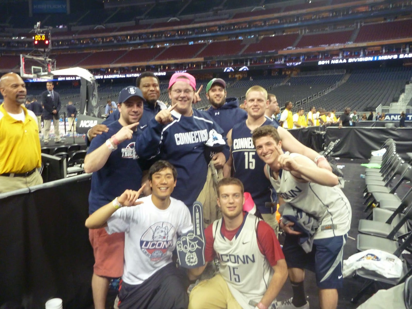 The entire experience is spectacular. You wait in line with the students of the other three teams who are just as devoted college basketball fans. While waiting in line outside of Gampel Pavilion has it's own magically atmosphere, waiting for the Final Fours is like no other. The anticipation is as high as it gets and you must make sure you get a pleasant seat to watch the games. Since it is basketball being played in a football stadium, there WILL be terrible seats. There is a distinguished feeling about running in an empty football stadium to reserve that seat then, of course, taking pictures. Once you have your seat, the hard part is over and now you can fully enjoy your time. Sport figures start entering the stadium (e.g. sport writers, commentators, and of course athletes) having conversations with students and having a constant photo op. Luckily, the UConn student section was on the side of the television set on both of my trips. But then the games start, you realize this just another game, and you cheer as hard as you can. But everything that surrounds the game is impressive. (Seeing your friends cry when your team wins the National Championship is another reason to make the trip)