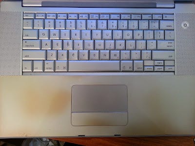 And I prefer the keys being right next to each other which for some reason, laptop companies are going away from; I don't need empty space between my keys! That is one dirty old laptop...