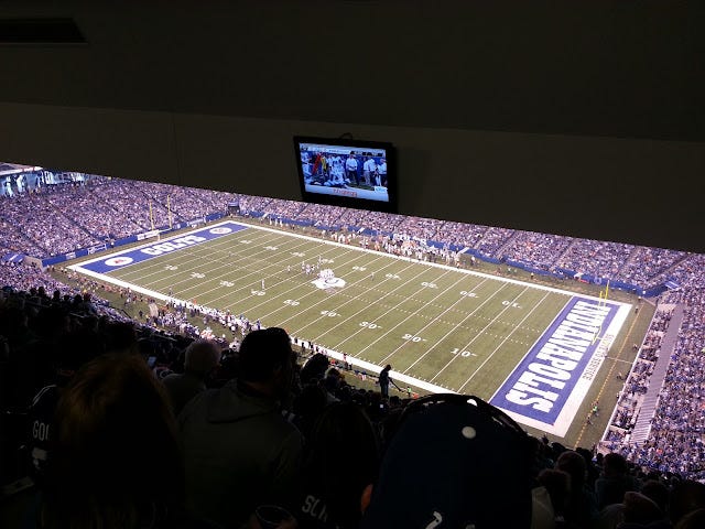 I am now 2-0 at Lucas Oil Stadium when watching the Colts. Maybe they should have me at every game... But really, the team played very well today. Andrew Luck had 433 passing yards with 2 touchdowns (one being a great throw to Reggie Wayne). But more importantly, the defense stopped the Miami Dolphins when the team needed it the most. It was a clean competitive game till the end with no turnovers that ended with a Colts win. And the Colts are now 5-3!